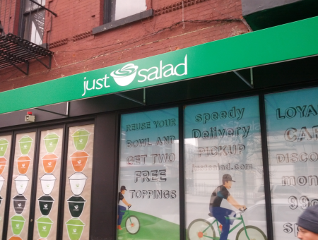A couple days ago Just Salad, the DIY salad shop that's been under construction since September in the space last occupied by the ill-fated Parkslope Eatery, was kind enough to send a tweet in my direction saying that they'd "be opening up soon."