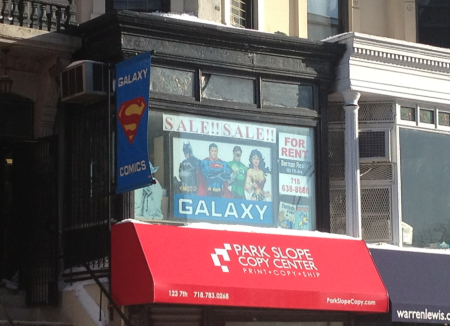 The Seventh Avenue outpost of Galaxy Comics, on the second floor of 123 Seventh Avenue (between President and Caroll Streets) will be closing by the end of March. There's a For Sale sign in the window, and manager Robin Buckwalter, who can almost always be found behind the store's front desk, confirmed that they're on their way out, even though the original Fifth Avenue location (between Eighth and Ninth Streets) will remain open.