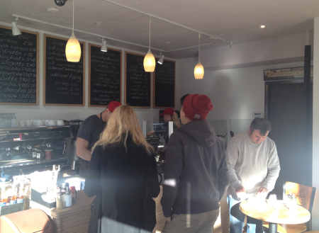 I don't like the red awning (it reminds me of the cheesy Crab Spot awning) and I agree that the "hug in a mug" moniker is incongruous with the French name. Cafe Nord has similar size constraints but pulls it off and is more conducive to wanting to hang out there. Park Slope residents can be very particular and unforgiving so a new business really needs to do their research before rolling the die as these high rents leave little room for error.