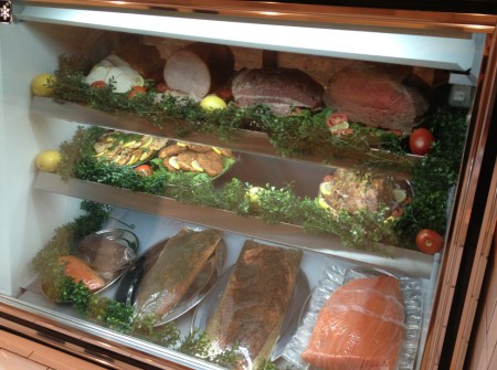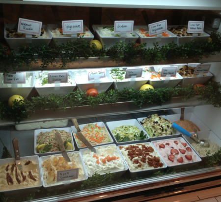 For lunch, offerings include salads, homemade soup, and grass fed burgers. Sandwiches are served on a bagel or bread from Brooklyn Bread, and come topped with roast beef, corned beef, Virginia ham, roast pork, or roast turkey, all made in-house. Baked goods including croissants, muffins, turnovers, and cinnamon buns are all also baked in-house.