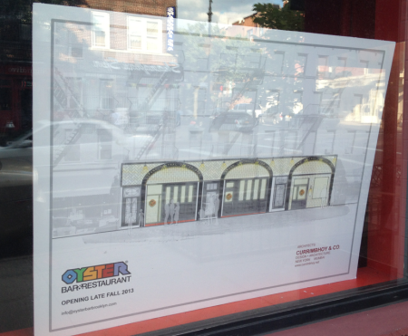 Lo and behold, it's not only official confirmation from the folks behind Grand Central Oyster Bar that they're indeed moving into the space, but it's a full mockup of their plans for the restaurant's facade (click for a closer look):